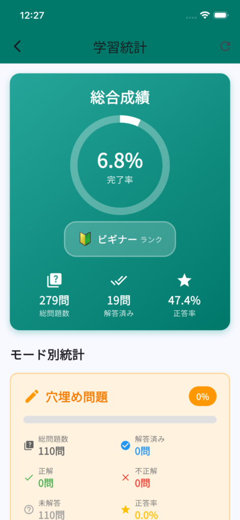 3)カテゴリ選択画面に「未解答・不正解」表示