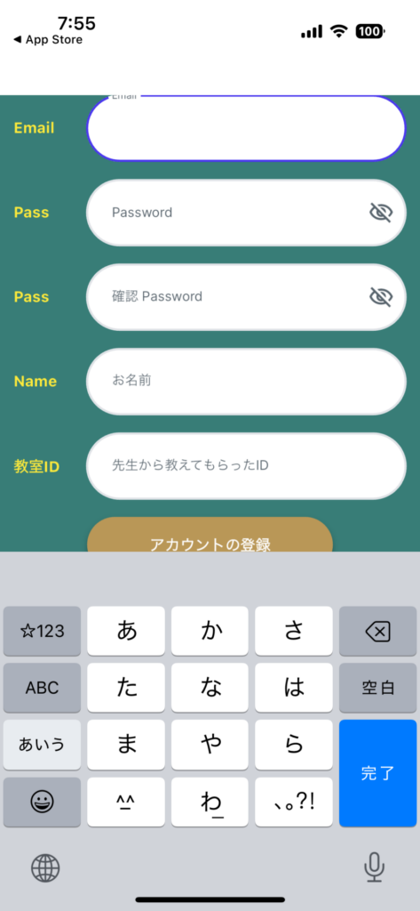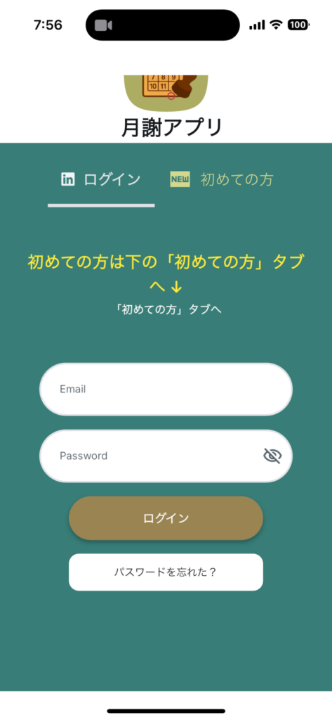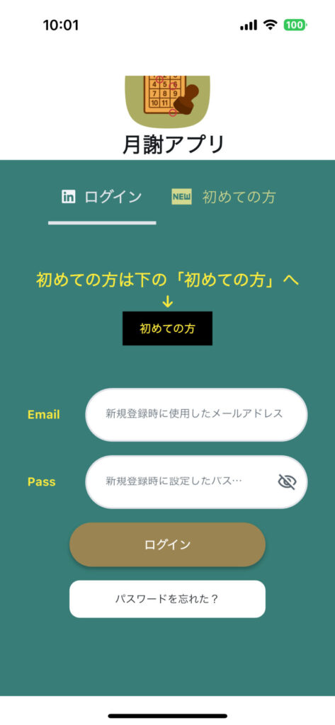 Password → 新規登録時に設定したパスワード - Email、Passの黄色ラベル追加(新規登録でやっていたけど、ログインではやっていなかった)