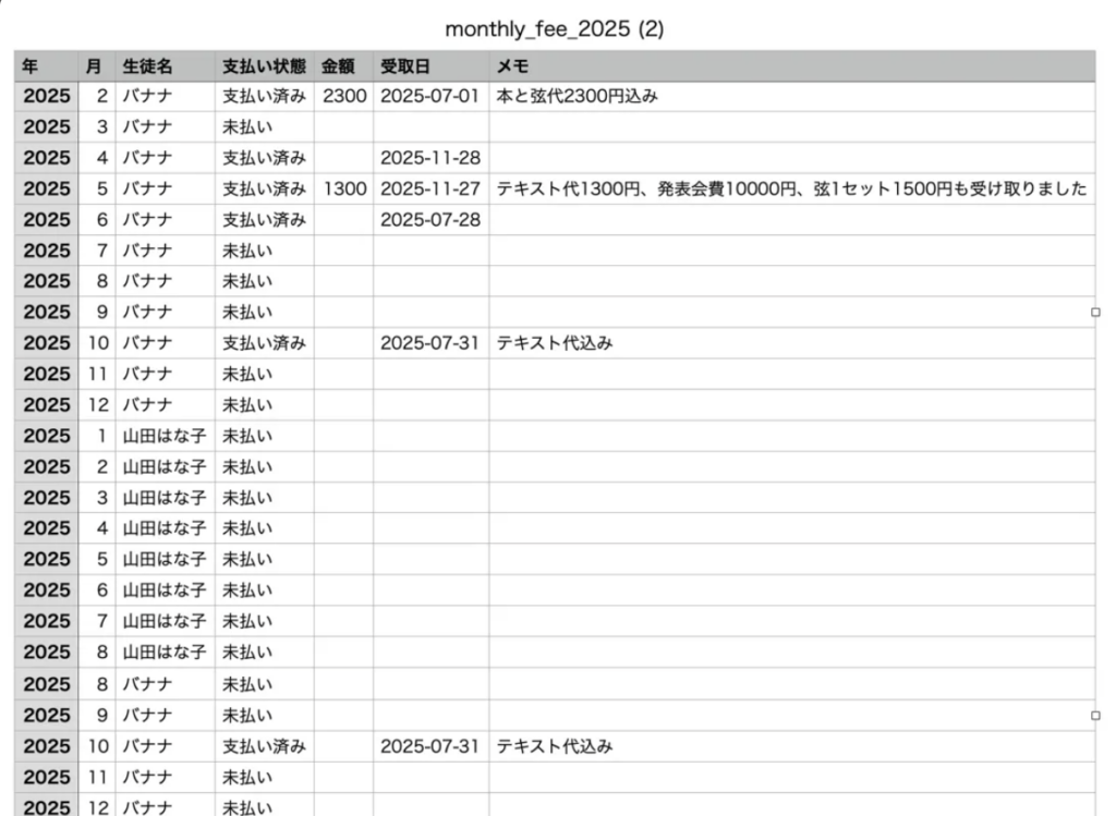 年,月,生徒名,支払い状態,金額,受取日,メモ