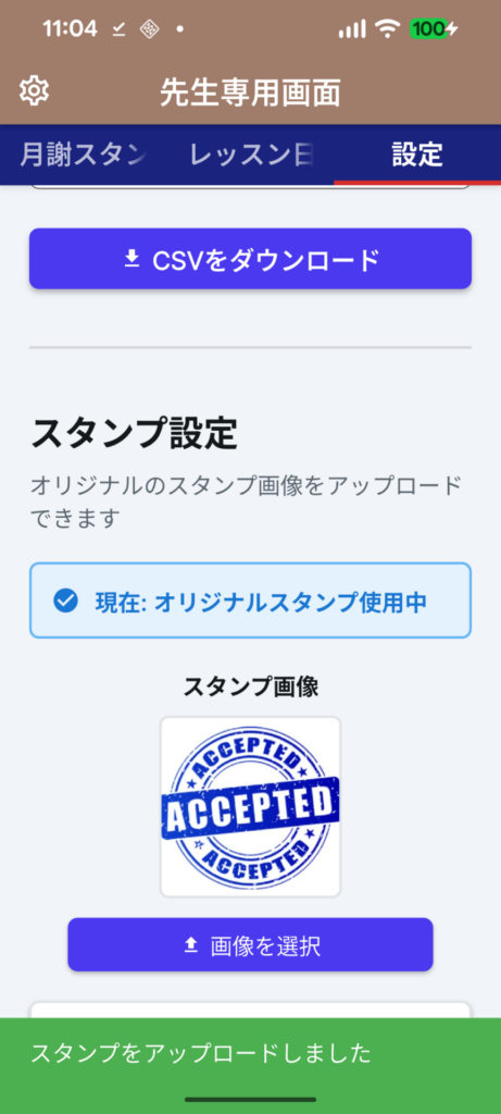 - 先生が自分のスタンプ画像をアップロードして使用できる