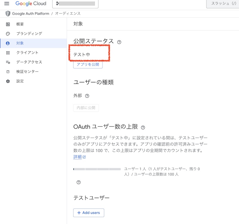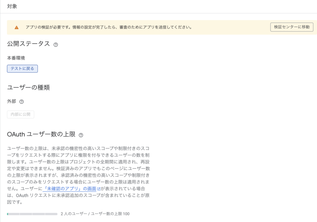 OAuth同意画面が「テスト中」のままだった ⚠️