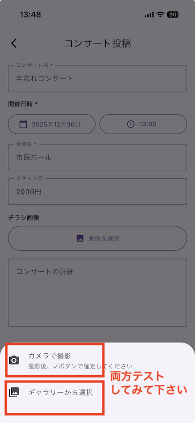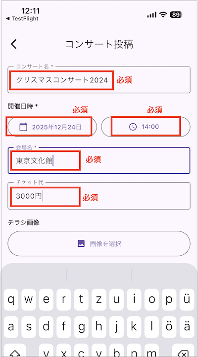 コンサートの詳細など入力したら最後に「投稿」クリック