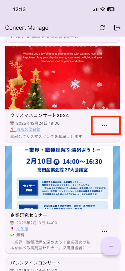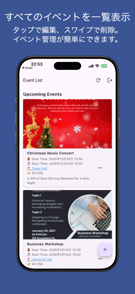 編集・削除も可能 - イベントの自動並び替え (直近が上、終了は終了セクションへ)