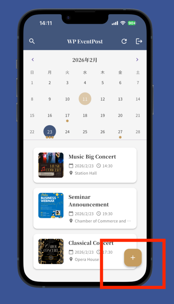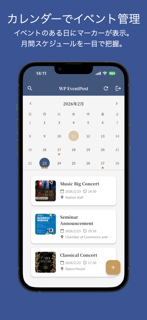 WordPressでイベントやコンサート・セミナー情報を管理している方に最適なコンパニオンアプリです。