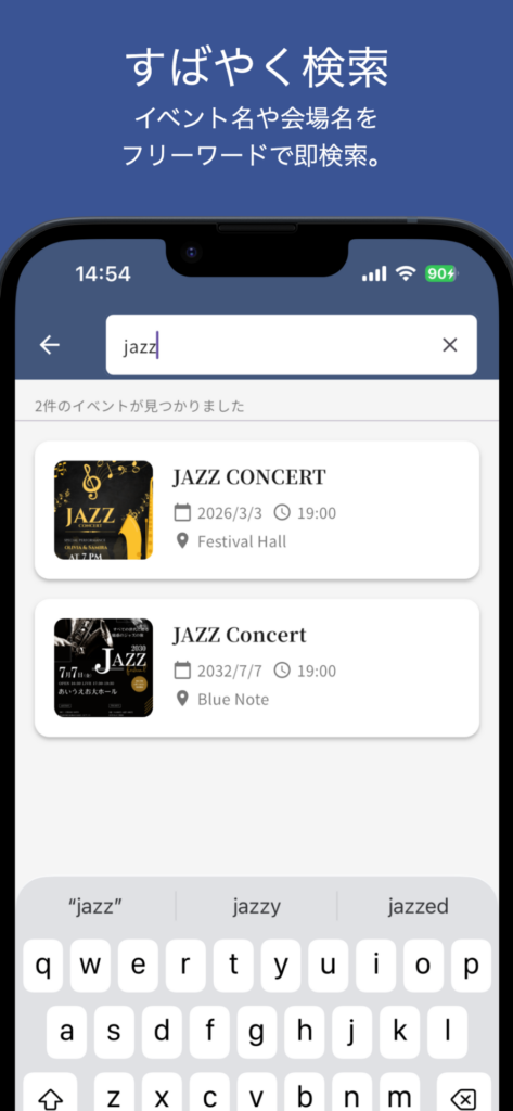 - フリーワード検索 — イベント名や会場名ですぐに検索