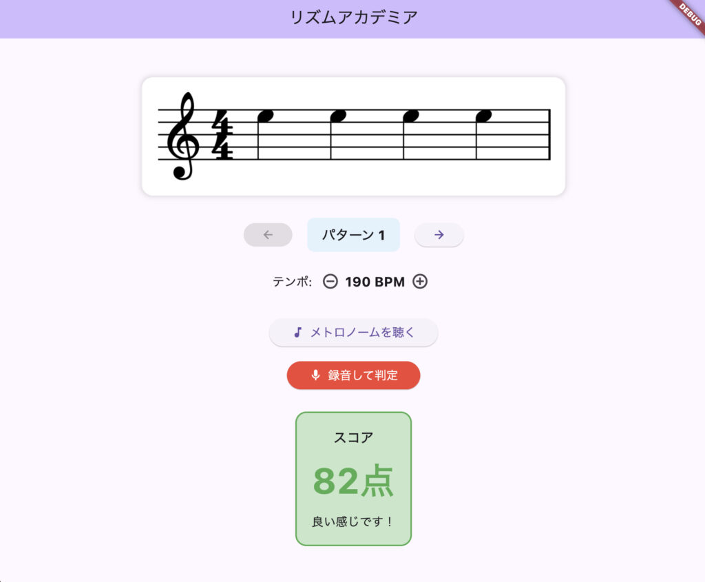 ✅ メトロノーム機能(4拍、テンポ調整可能)