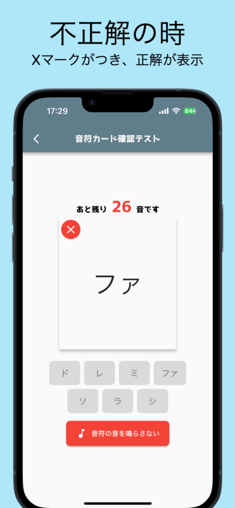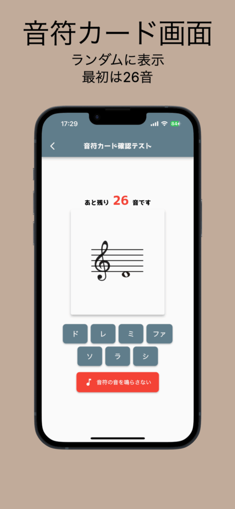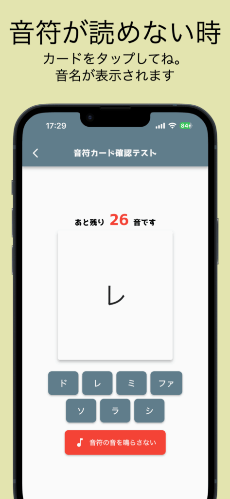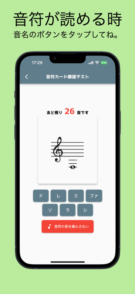 各音符の音を聞くことができます。耳で覚えることで、より効果的に学習できます。