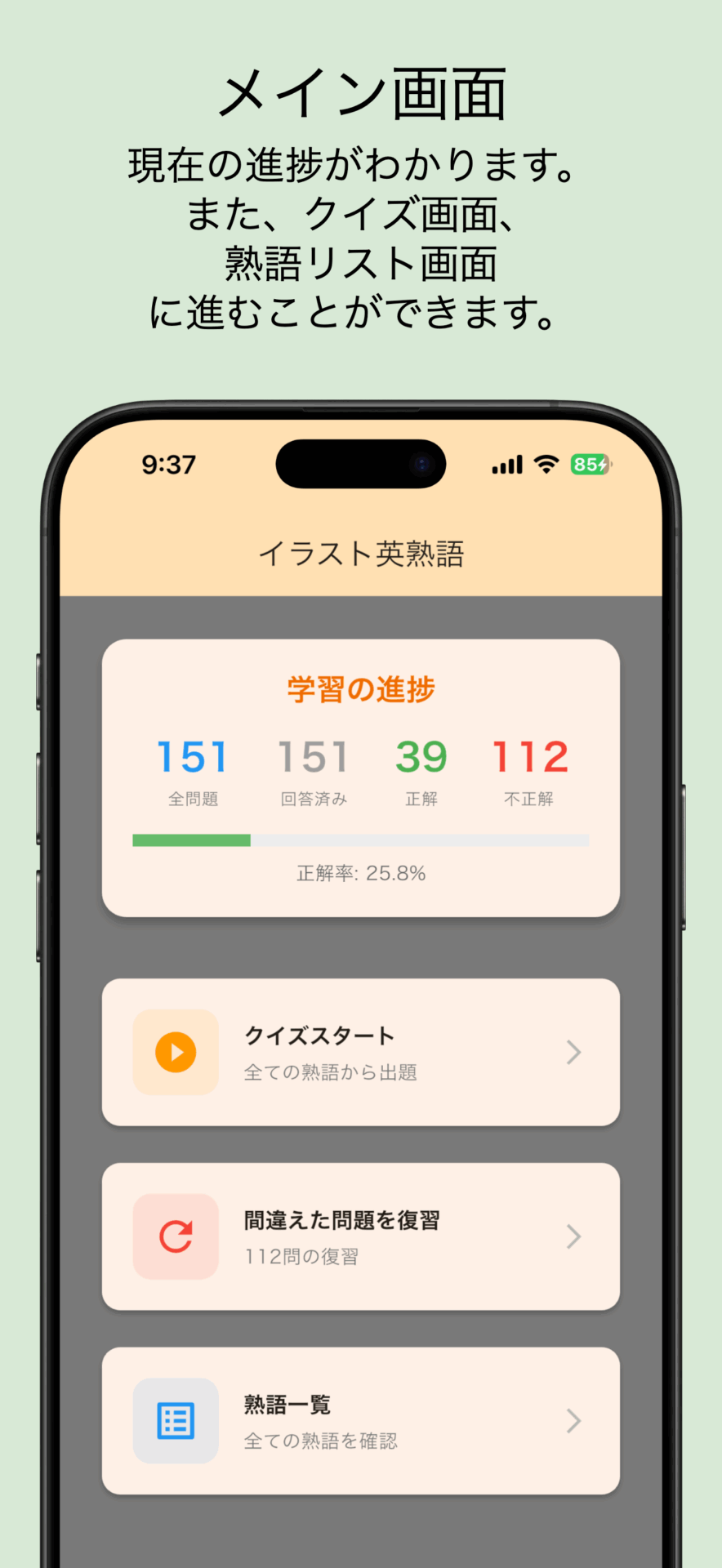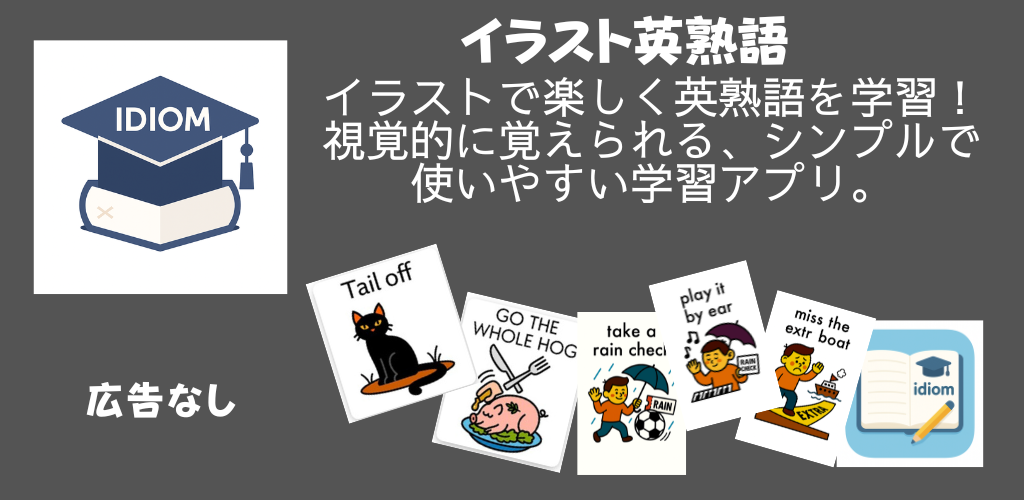 イラストで楽しく英熟語を学習!151個の熟語を視覚的に覚えられる、シンプルで使いやすい学習アプリ。広告なし