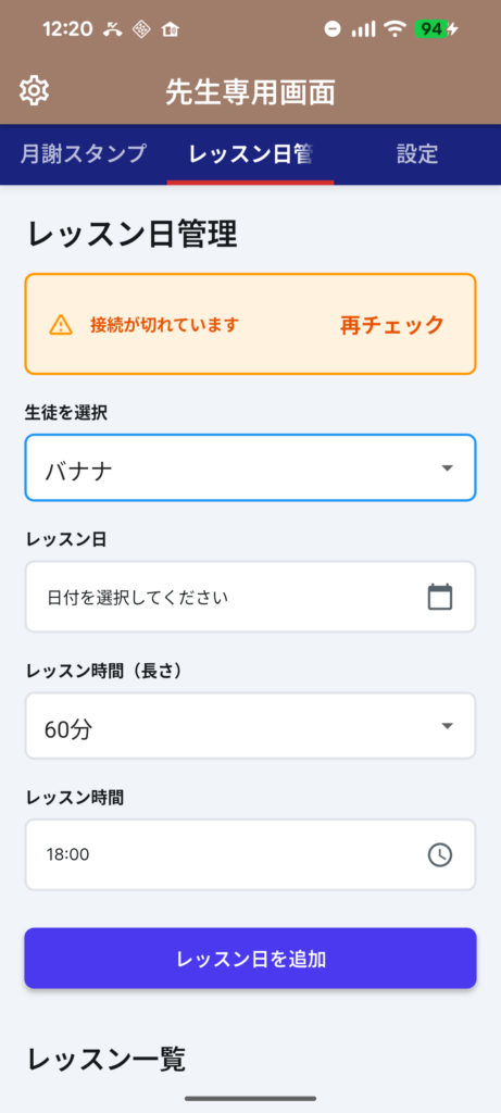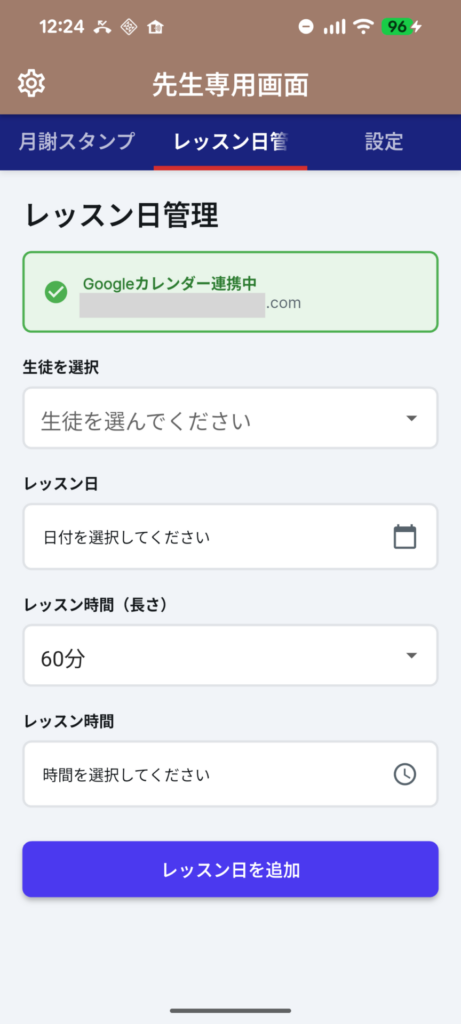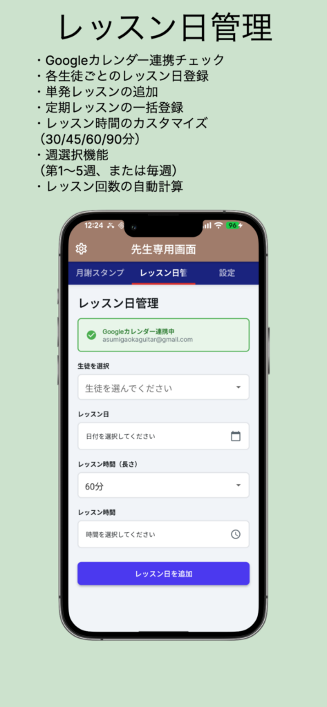 - 各生徒ごとのレッスン日登録