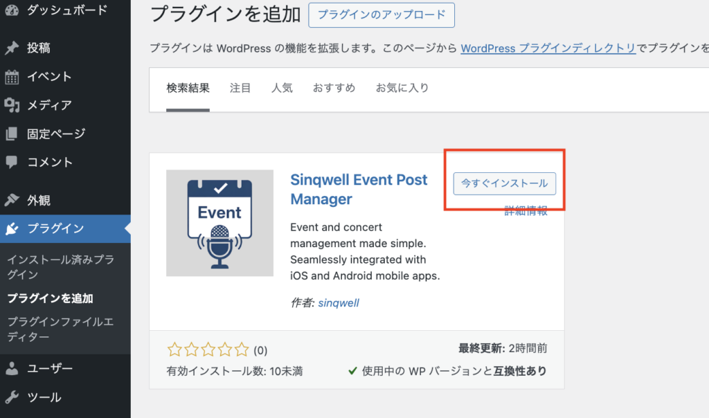 Sinqwell Event Post Managerと検索