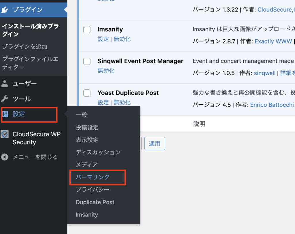 そのあとは、ダッシュボード「設定」→「パーマリンク」