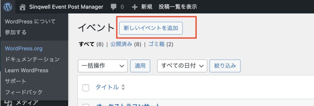 WordPressプラグインSinqwell Event Post Manager を日本語化しました。