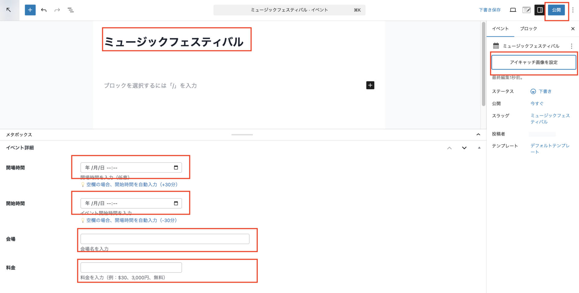 (開場時間、会場、料金、アイキャッチは任意です。入れなくてもOk)