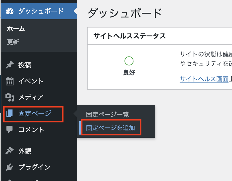 例)固定ページに入れる場合