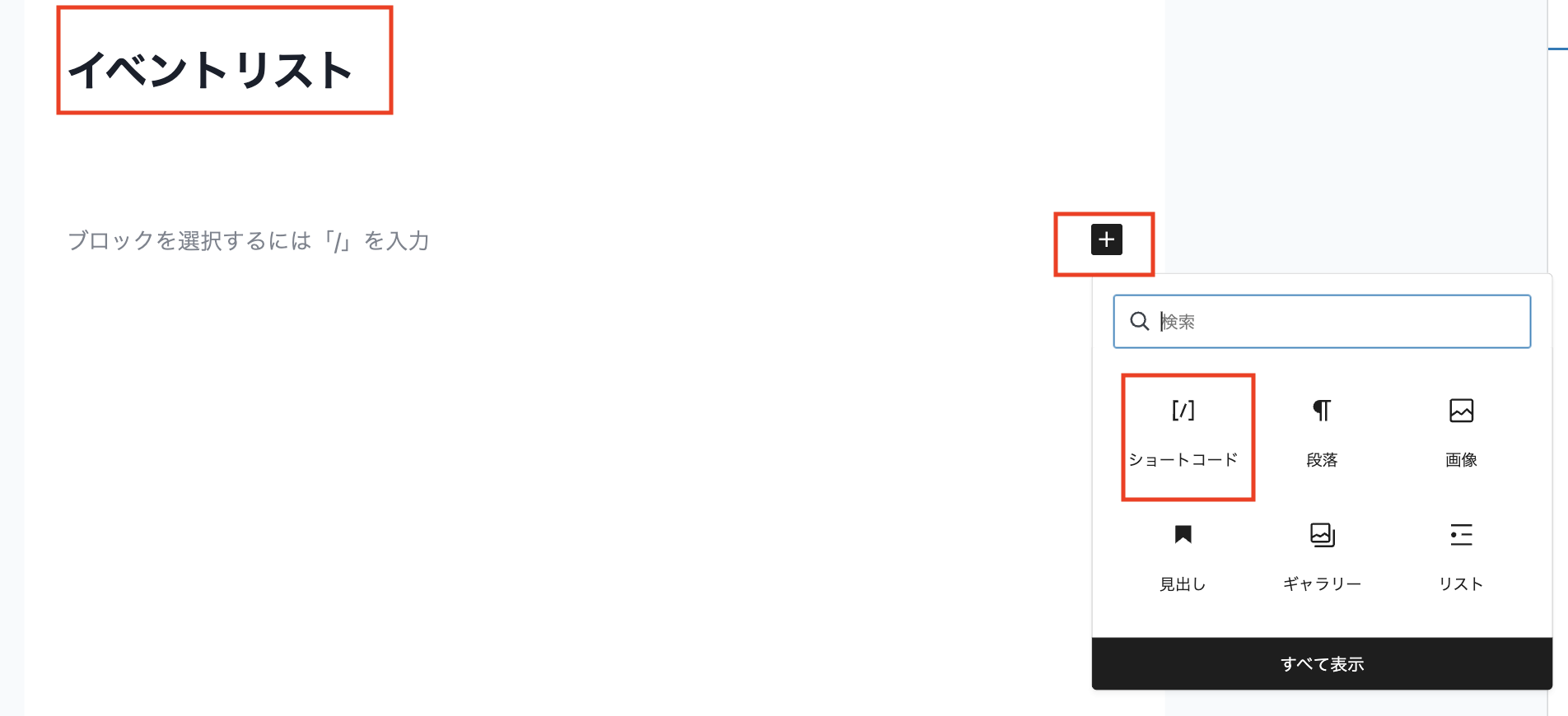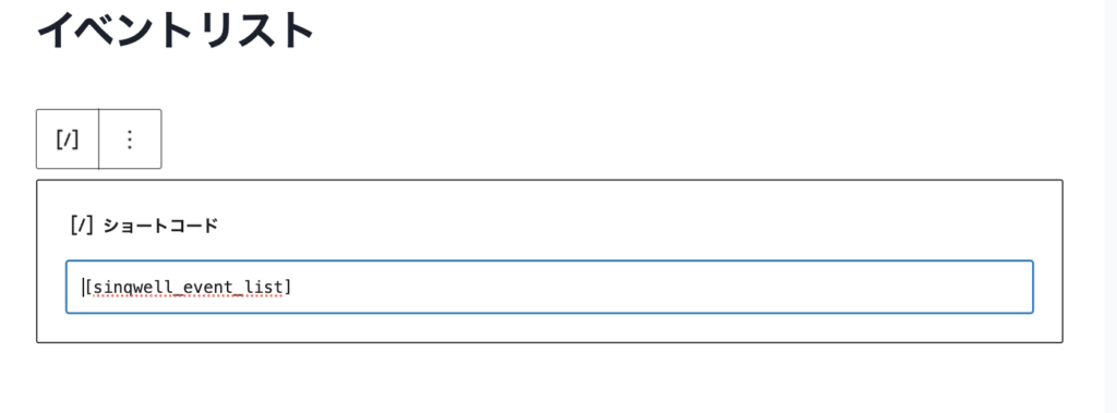 イベントリストを表示させたい場所にショートコード